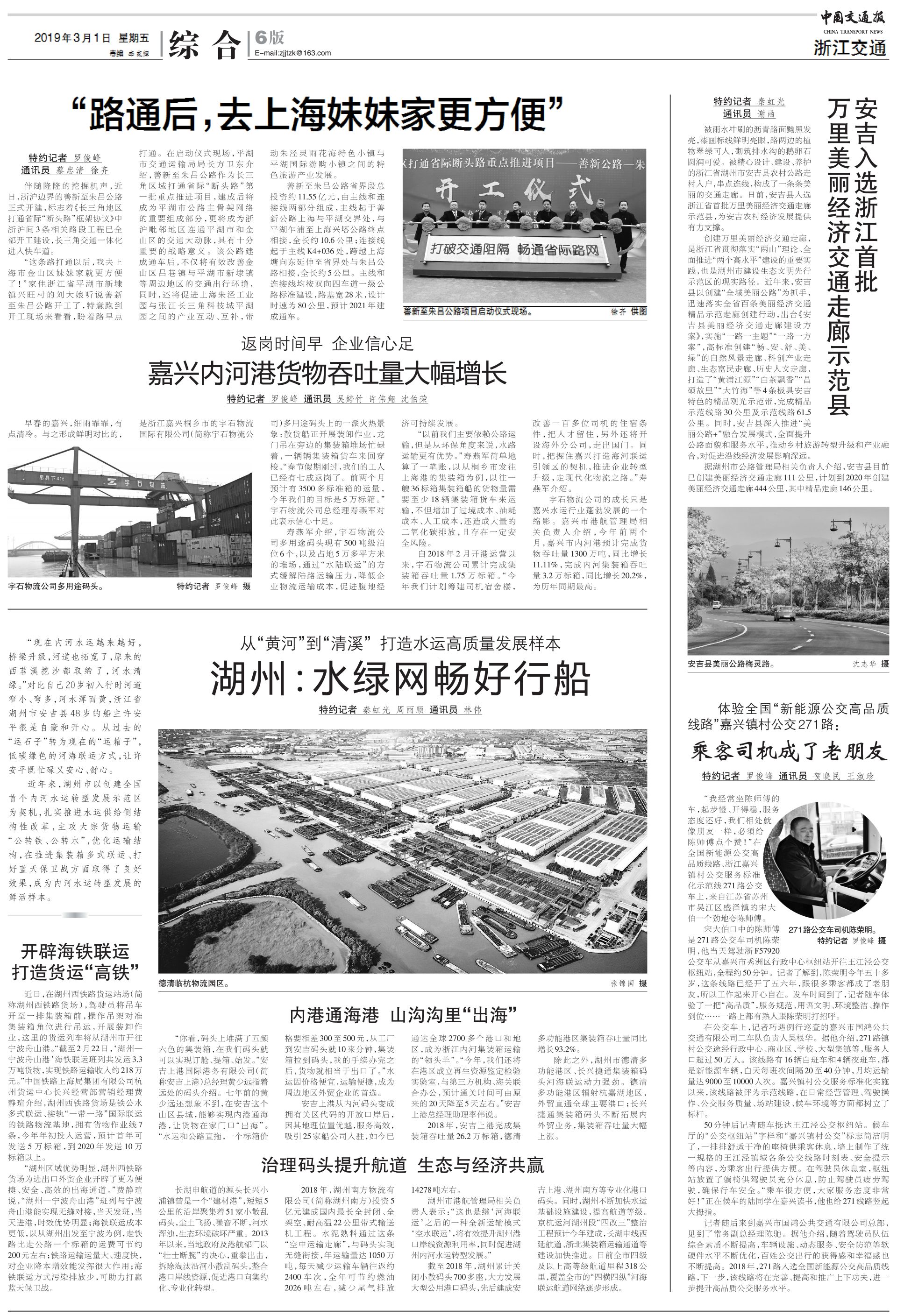 “从生态环境保护要求来看,内河水运要调整运输结构,特别是以能源结构、产业结构、交通运输结构调整为主攻方向,实施釜底抽薪式的源头控制和综合治理。”胡旭铭表示,浙江港航部门将着力构建通江达海的航道网络体系、融合协调的港产城联动体系等“六大体系”,推进水运更高质量发展。