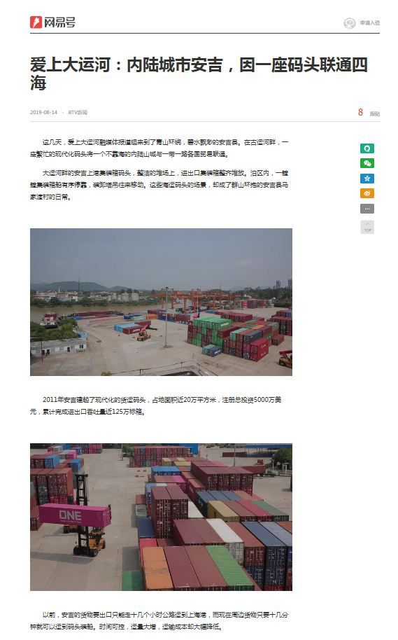 这几天,爱上大运河融媒体报道组来到了青山环绕,碧水飘渺的安吉县。在古运河畔,一座繁忙的现代化码头将一个不靠海的内陆山城与一带一路各国贸易联通。